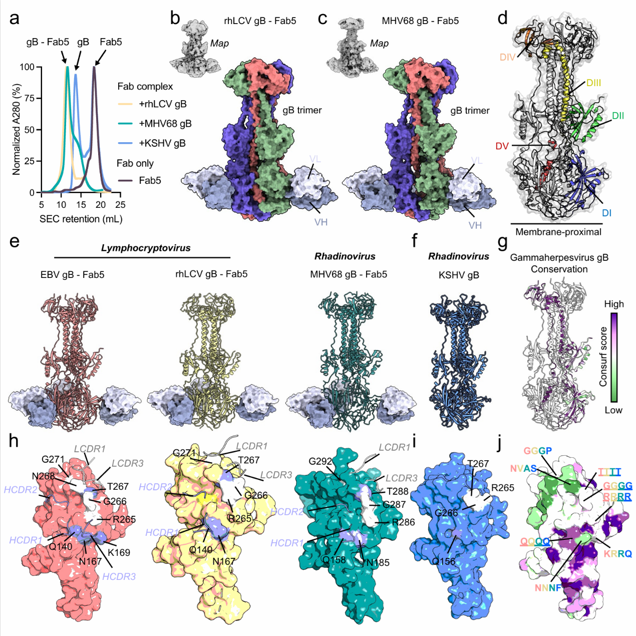 图2. Fab5识别γ疱疹病毒gB保守中和表位
